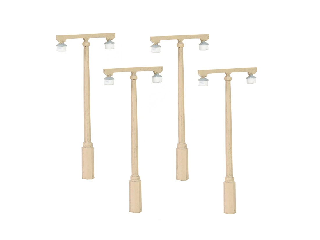 Modell: Spur 00. Bahnsteiglampen in Beton-Optik. Inhalt: 4 Stück.