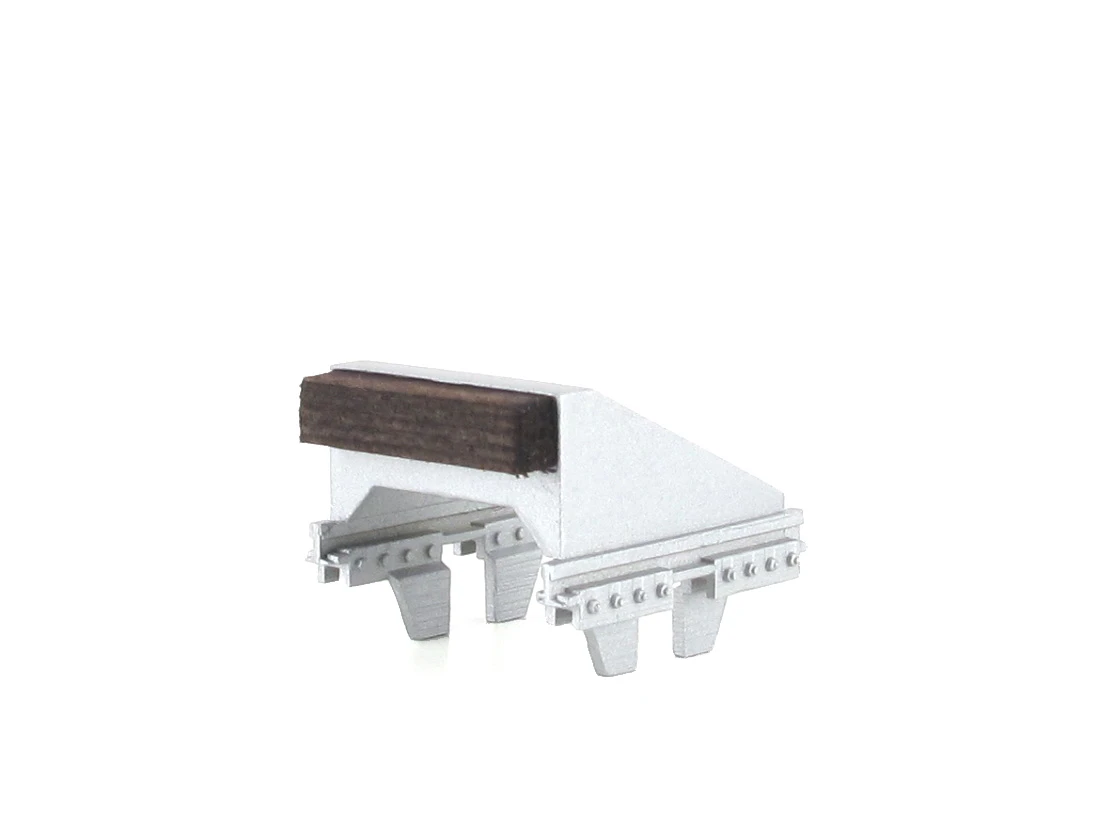 Modell: Spur 0m. Maßstab 1:45, Prellbock aus Messingguß mit Echtholz, Spurweite 22,2 mm.