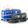 Inhalt: Feldbahnlokomotive LKM Ns 2f (braun mit rotem Fahrwerk wie sie ähnlich u.a. im ehemaligen Ziegeleiwerk Bad Freienwalde zum Einsatz gekommen ist), 3 Kipploren, 8 Bogengleise Radius 115 mm, 1 gerades Gleis und 1 Anschlussgleis je 133,2 mm. Inkl. Batteriekasten mit Schalter (Vorwärts/Rückwärts/Stopp).