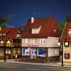 Modell: Spur H0. Eines der Häuser ist eingerüstet und wird momentan frisch gestrichen. Gerüstteile liegen bei.