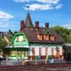 Modell: Spur H0. Was wäre ein Kirmesplatz ohne das obligatorische Kettenkarussell? Ausgestattet mit 12 Sitzplätzen, farbig gestalteten Dachsegmenten und indirekt bunt beleuchteten Dachträgerstreben der Mittelsäule. Das Modell ist mit einem Antriebsmotor ausgerüstet (12-16 V, Wechselspannung).