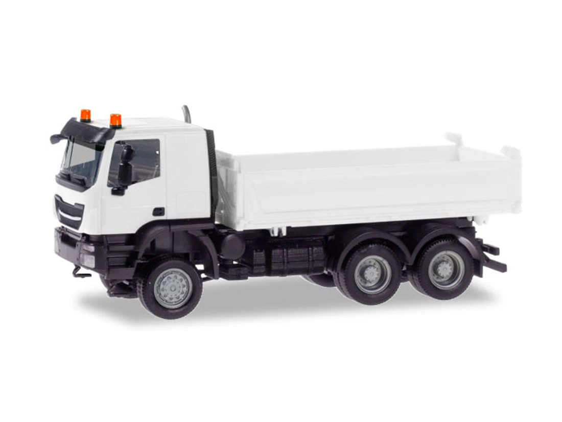 Spur H0. Für Bastler und Umbauer bietet sich der Iveco Trakker als Bausatz in weißer Farbgebung an, ohne vorhandene Bedruckungen entfernen zu müssen.