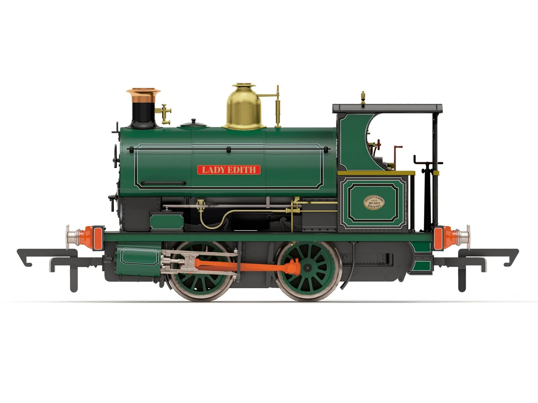 Spur 00 Gleichstrom. Die Dampflok Peckett W4 Class 0-4-0ST Earl of Dudley Round Oak Works Lady Edith ist ein Modell der berühmten ‚Earl of Dudley’s Railway‘, die das Round Oak Steel Works in Großbritannien bediente. Die Dampflokomotive, hergestellt von Hornby, ist im Maßstab 1:76 und gehört zur Spur 00. Das Modell verfügt über einen Motor und ist mit den Kupplungen NEM 362, KKK und englischen Hakenkupplungen ausgestattet. Es hat jedoch kein Licht. Die Länge der Lok beträgt 84 mm. Die Dampflok hat eine Digitalschnittstelle, die mit dem NEM 652 8-polig Standard kompatibel ist. Sie repräsentiert die Era 2 in Großbritannien.