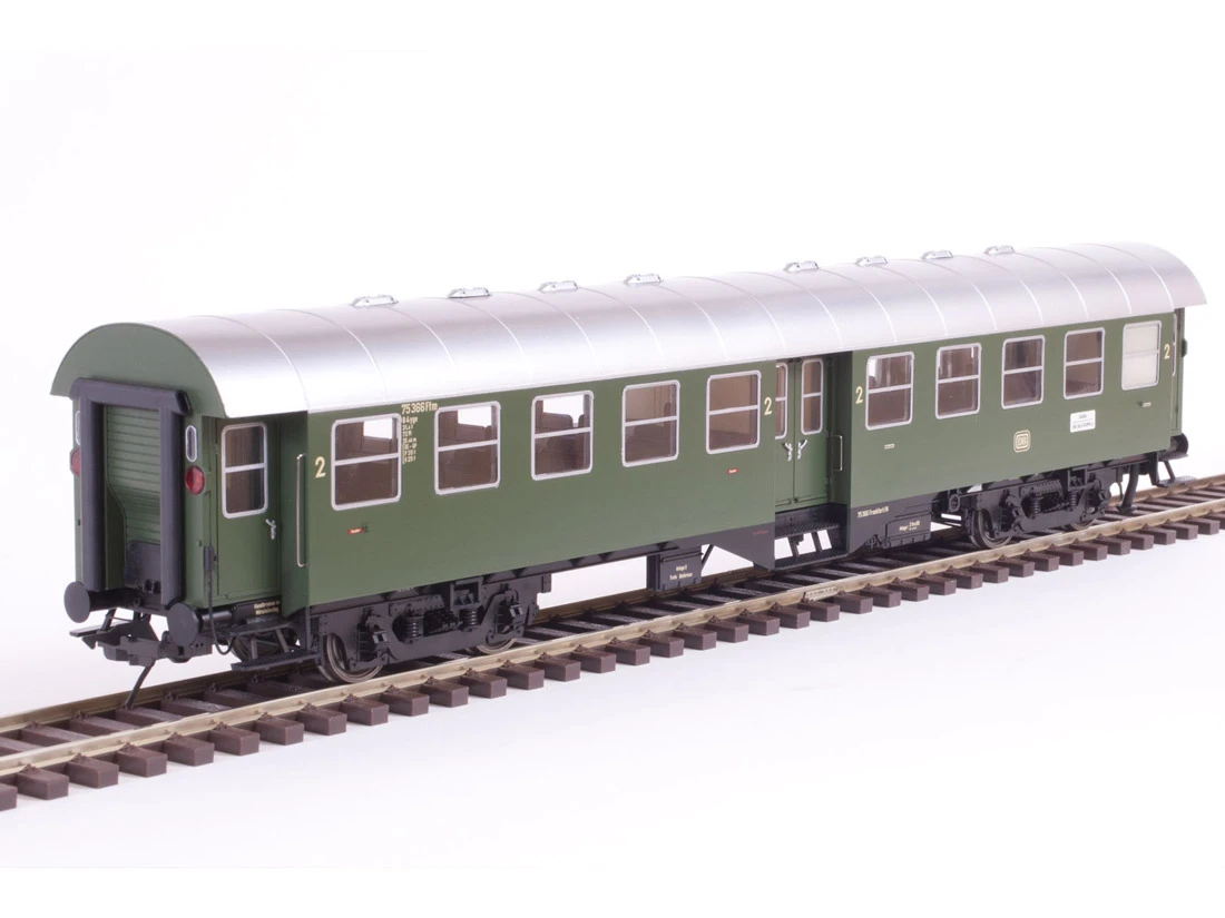 Modell: Spur 0 Gleichstrom. Ausgestattet mit Metallradsätzen, konstanter, flackerfreier Innenbeleuchtung, im Digitalbetrieb schaltbar, mit Neonröhreneffekt beim Einschalten, Stromabnahme in den Achslagern, dadurch keine Beeinflussung der Laufeigenschaften, Spurkranzhöhe kleiner 1,2mm, Inneneinrichtung, automatische Kupplung mit Kurzkupplungskulisse, Kupplungsnormschacht, Federpuffer, mit originaler Schraubenkupplung nachrüstbar.