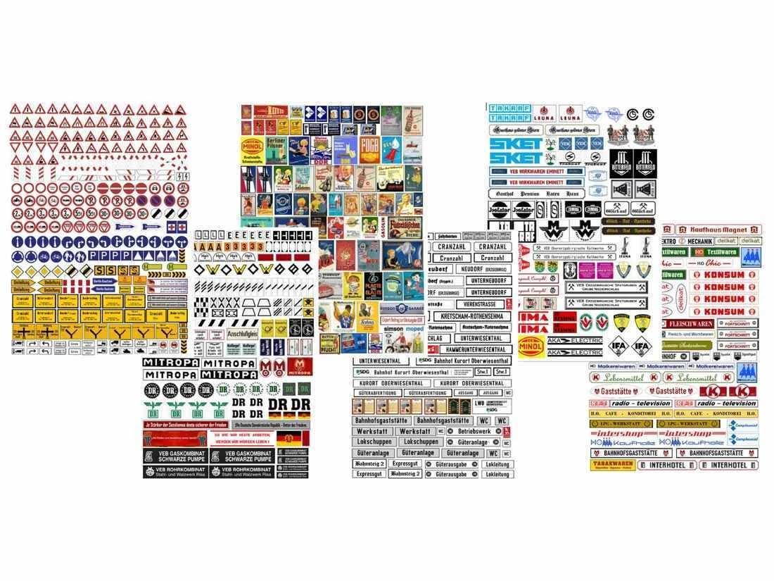 Modell: Spur TT. Sechs Bogen im Format A6 (105 x 148 mm), selbstklebend, nach Motiven entlang der Fichtelbergbahn-Strecke.