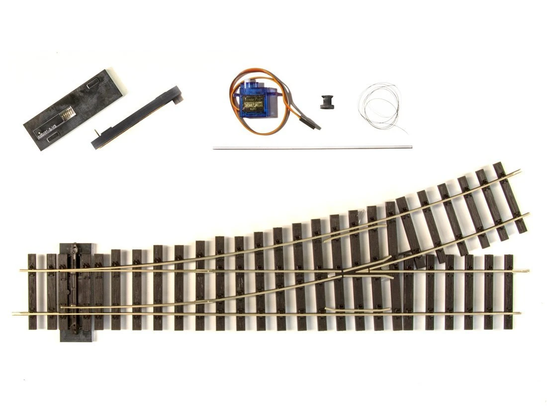Der Bausatz enthĂ€lt alle notwendigen Bauteile wie BetĂ€tigungsmechanik, Servo und Halter zur Erstellung eines Antriebes. Der beigefĂŒgte Servo kann durch alle handelsĂŒblichen Ansteuerungen betĂ€tigt werden. Die Weiche ist nicht im Lieferumfang.