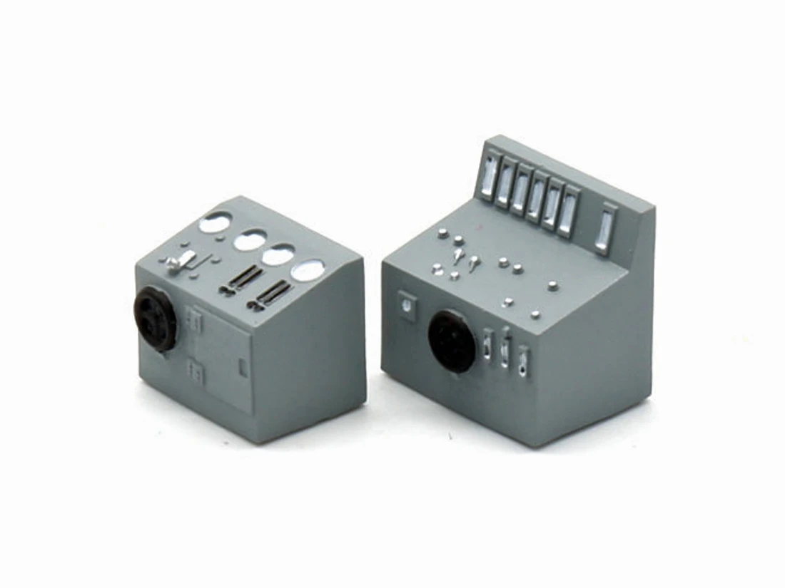 Modell: Spur TT. Zwei Schaltpulte für Fabriken, Fertigmodell aus Kunststoff, bemalt.