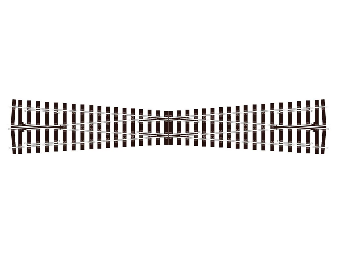 Modell: Spur 0. SL-E794BH Code 124 Streamline Kreuzung mit Holzschwellen-Nachbildung und leitendem Herzstück, Länge 584 mm, Winkel 8 Grad.