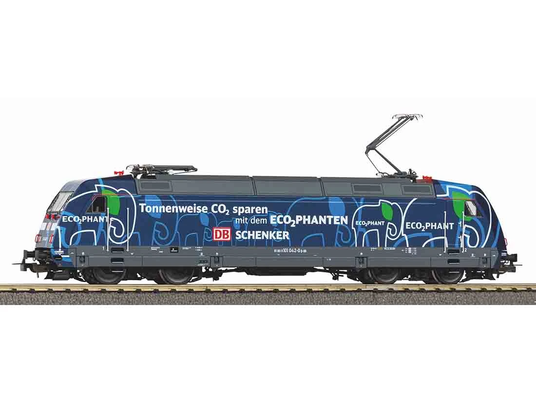 Die Elektrolok BR 101 Ecophant der DB AG ist ein hochdetailliertes Modell des Herstellers Piko. Mit einer Länge von 219 mm im Maßstab 1:87 ist sie ideal für die Spurweite H0 mit einer Breite von 16,5 mm geeignet. Die Lokomotive wird mit Gleichstrom DC betrieben und verfügt über einen leistungsstarken Motor sowie eine Schwungmasse für eine realitätsnahe Fahrt. Die BR 101 ist zudem mit Haftreifen ausgestattet, die für eine optimale Traktion sorgen.