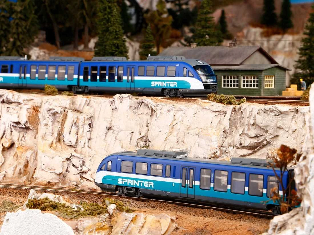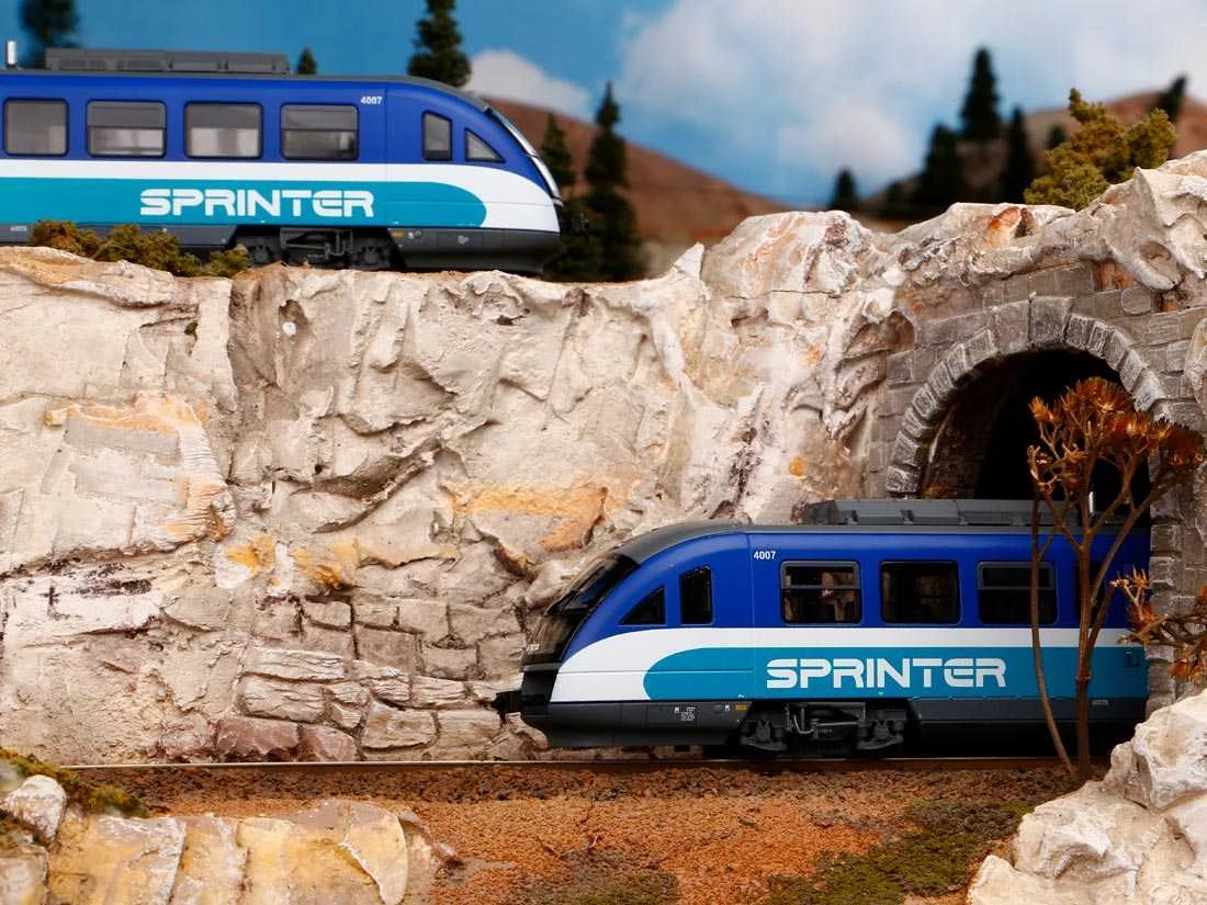 Modell: Spur H0 Wechselstrom. Dieseltriebwagen Desiro als Sprinter der amerikanischen North County Transit District in North San Diego County, Kalifornien.