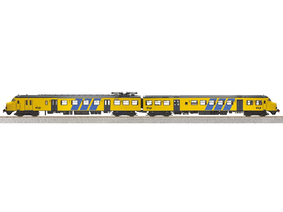 Vorbild: Der zweiteilige niederlĂ€ndische Elektrotriebzug Plan V – in den Niederlanden besser bekannt als Mat ’64 oder unter dem Spitznamen Apekop (Affenkopf) – wurde ab Mitte der 1960er-Jahre einer der Standard-NahverkehrszĂŒge der NiederlĂ€ndischen Staatsbahn. Mit insgesamt 246 Exemplaren war er damals der meist gebaute Triebzug der NS. Ab der Serie V3 setzte sich auch beim Plan V das neue Farbschema der NiederlĂ€ndischen Staatsbahn durch: knallgelb mit grauen Details an der Front und drei blauen, diagonal verlaufenden Streifen an jeder Wagenseite. Bis zu ihrer Ausmusterung waren die TriebzĂŒge auf so gut wie allen elektrifizierten Bahnstrecken der Niederlande eingesetzt.