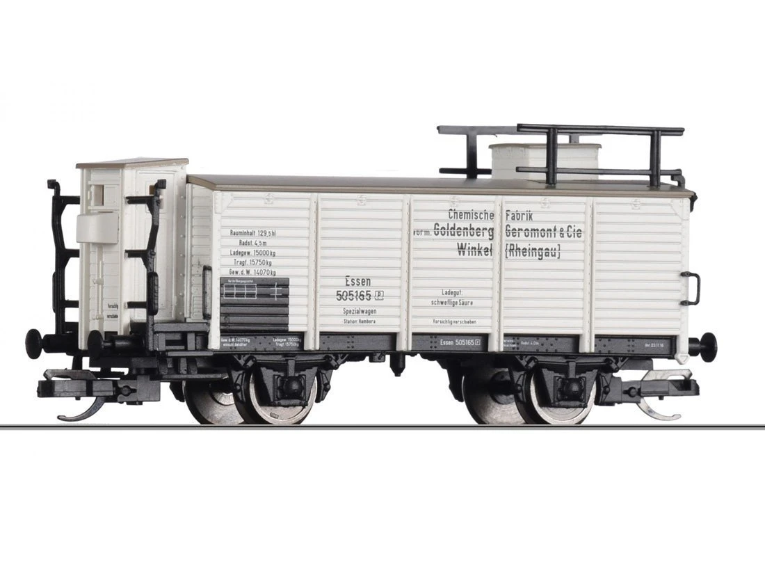 Modell: Spur TT Gleichstrom. Flüssiggaswagen „Chem. Fabrik Goldenberg, Geromont & Cie. Winkel“, eingestellt bei der K.P.E.V..