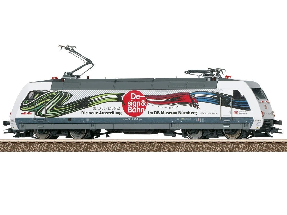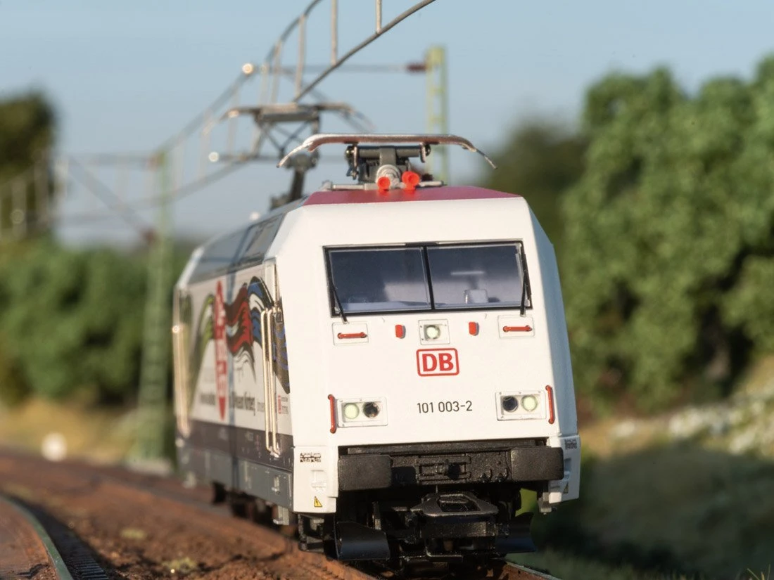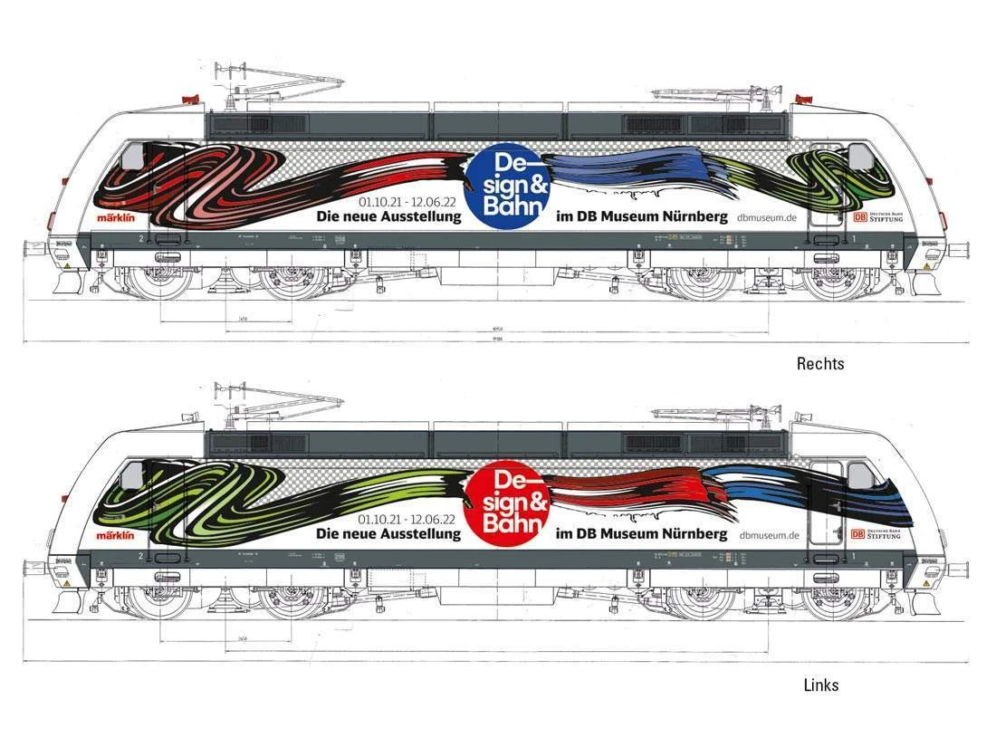 Vorbild: Schnellzuglokomotive Baureihe 101 der Deutschen Bahn AG (DB AG). Werbegestaltung „Design & Bahn“. Betriebszustand 2021.